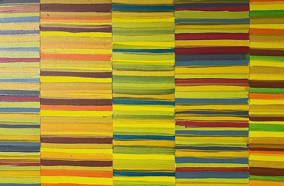 “The three ‘Journeys’ paintings present an exploration of life’s pathways, choices and challenges. Through the symbolism of colourful lines and obstructing blocks, viewers are invited to reflect on their own personal journeys, considering the decisions they’ve made, and the strength in overcoming personal obstacles. These paintings are a reminder that our own journeys are complex and multifaceted, each one telling a story of resilience and growth. “